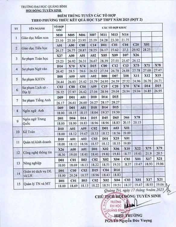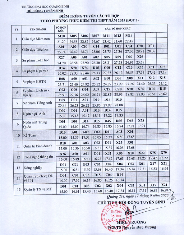 Từ 19/9/2025 đến 17h00 ngày 29/9/2025 – Tại Phòng Đào tạo và QLSV – Trường Đại học Quảng Bình